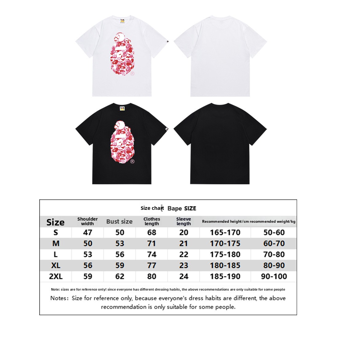 Sizes: S, M, L, XL, XXL