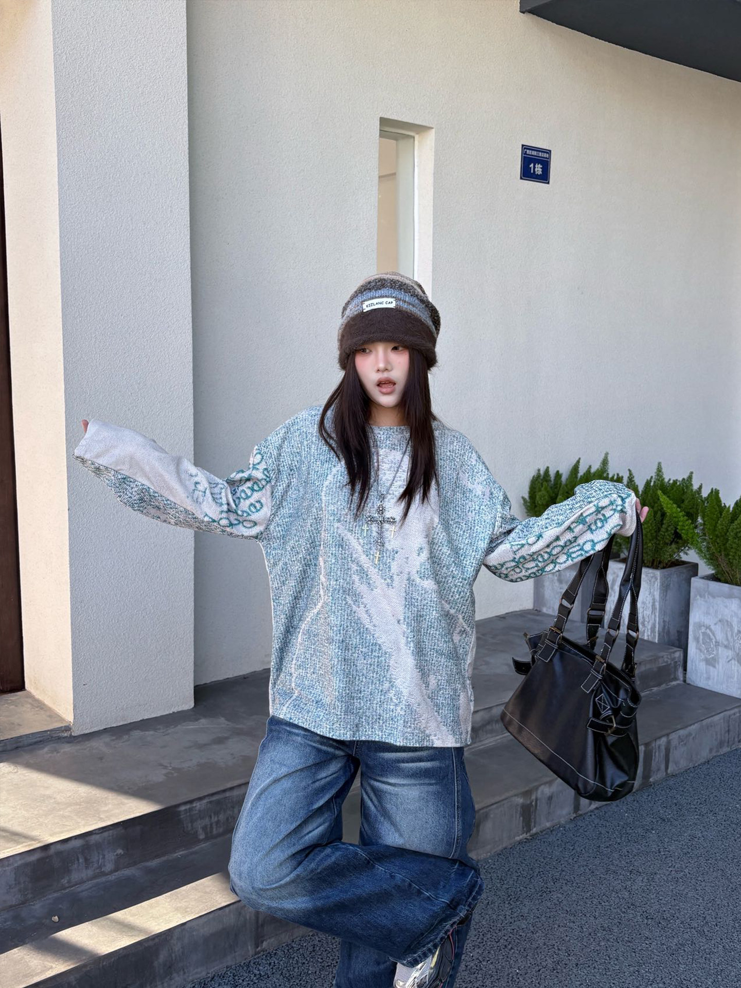 Comfortable Fit: Loose, wide-cut silhouette with a round neck and long sleeves for unrestrained